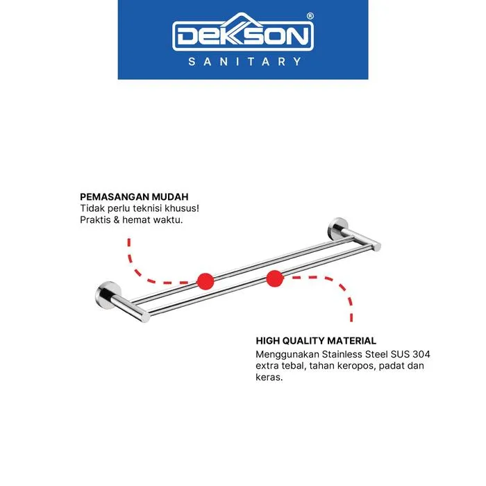 DEKKSON Towel Shelf TS 3309 adalah rak handuk premium berbahan Stainless Steel SUS 304 berkualitas tinggi yang kuat, tahan karat, dan dirancang untuk penggunaan jangka panjang. Cocok digunakan di kamar mandi rumah, apartemen, hotel, maupun area komersial.