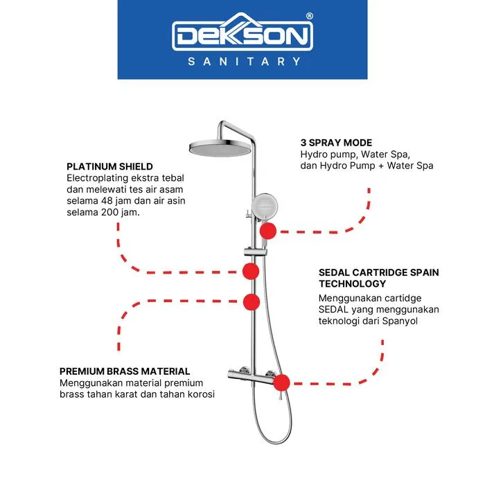 DEKKSON SS 2318-3 merupakan pilihan tepat bagi Anda yang menginginkan shower set modern dengan kualitas premium, desain elegan, dan kenyamanan maksimal setiap hari.