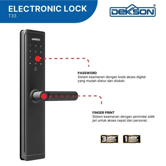 Kunci digital Dekkson T33 Grey adalah solusi keamanan modern dengan desain elegan dan fitur lengkap. Menggunakan sistem akses pintar yang terhubung dengan aplikasi TTLock, produk ini memberikan kendali penuh dan keamanan ekstra untuk hunian maupun kantor.